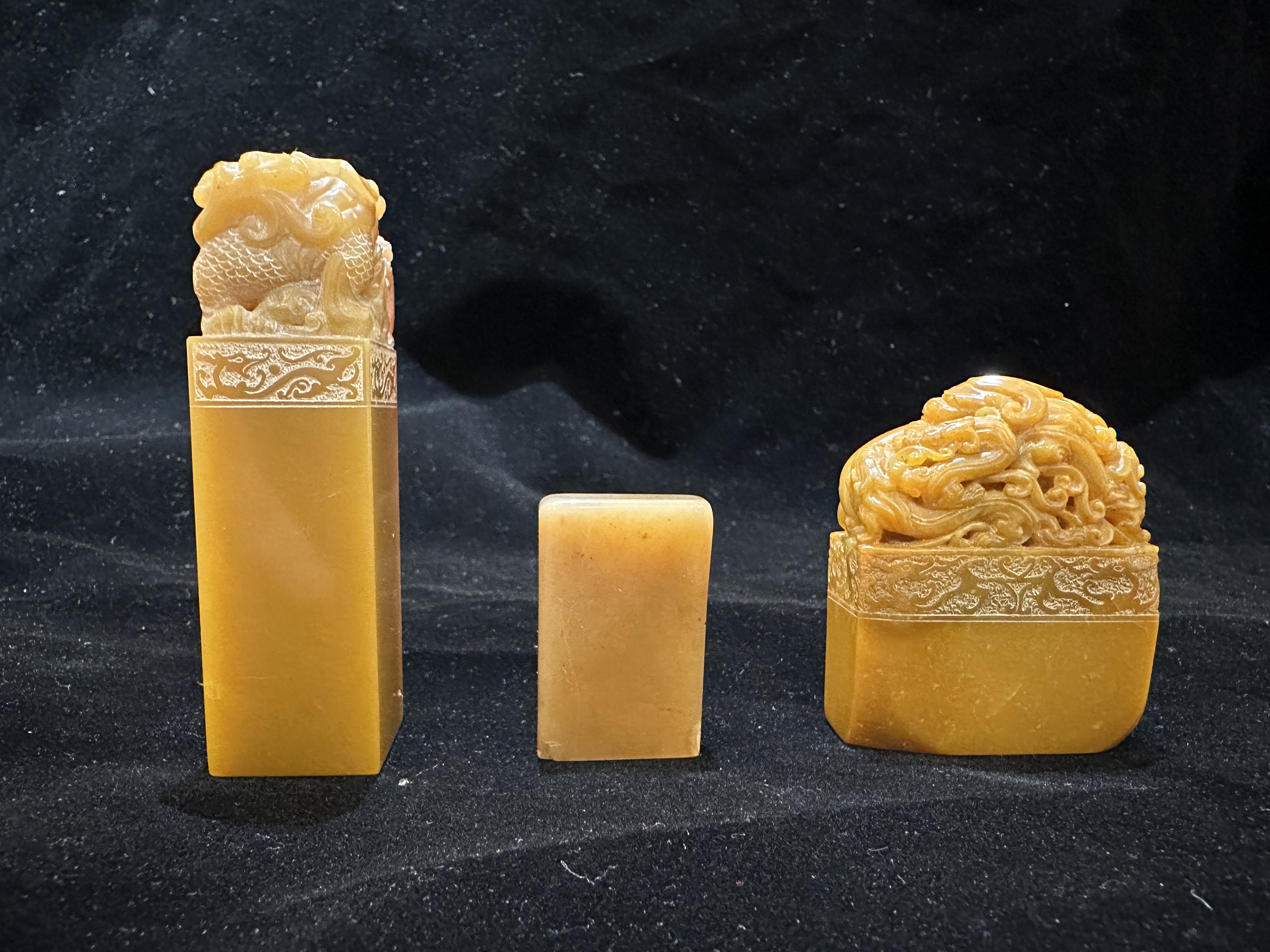 善伯凍石一對章/桃花凍一顆共三顆素章