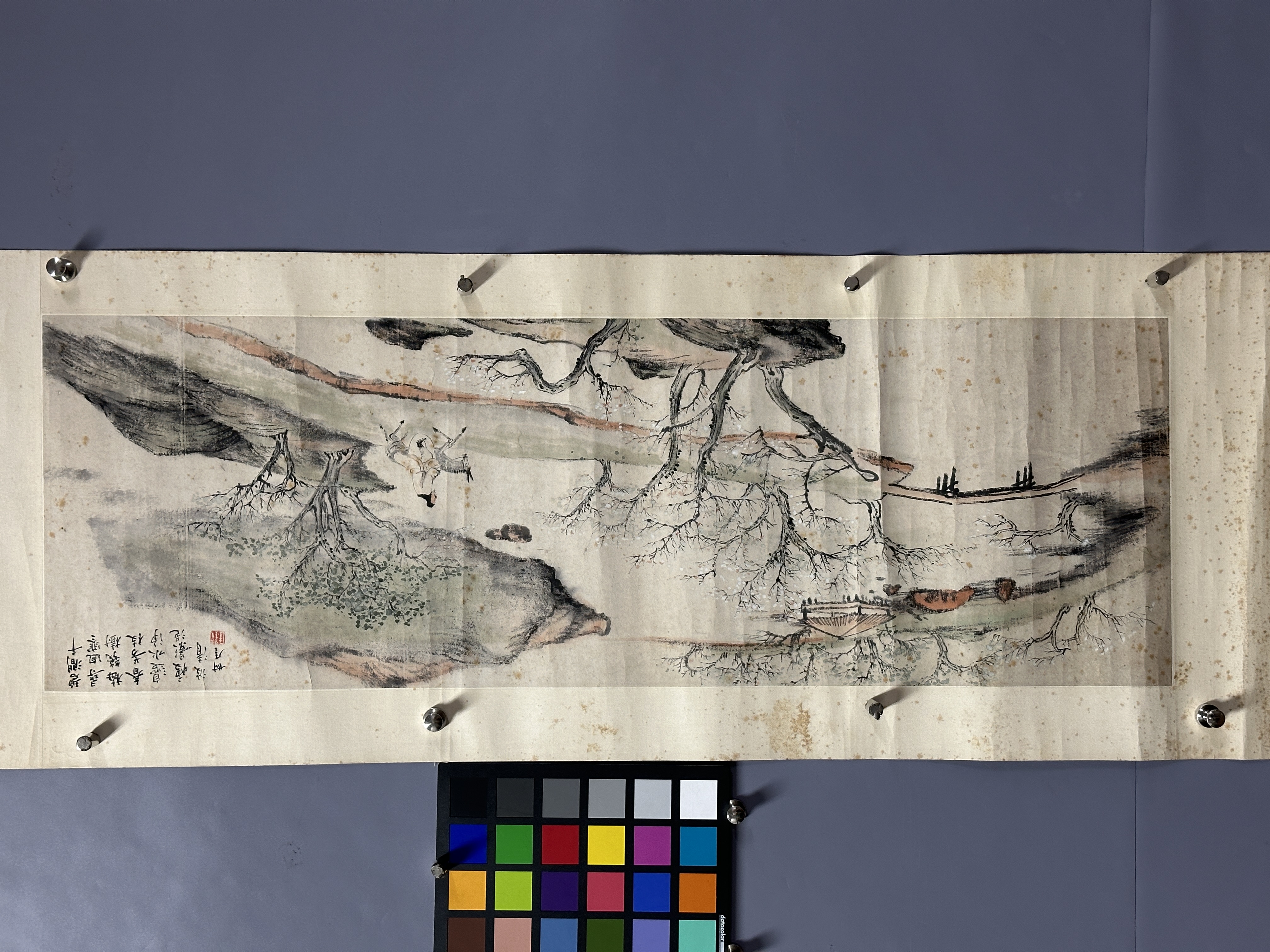 錢瘦鐵(1897年—1967年),名崖,字叔崖,號瘦鐵,以號行,別號數青峰館主、天池龍泓齋主等,江蘇省無錫市鴻聲裡人,中國近現代書畫家,中國畫會創始人之一。齋名有瘦鐵宦、梅花書屋、峰青館、磅?、契石堂、一席吾廬、煮墨盦、臨江觀日、天池瀧泓硯齋等。擅長中國畫及書法、篆刻。山水畫師法石?,曾被譽為“江南三鐵”(吳昌碩稱“苔鐵”、王冠山稱“冰鐵”)之一。