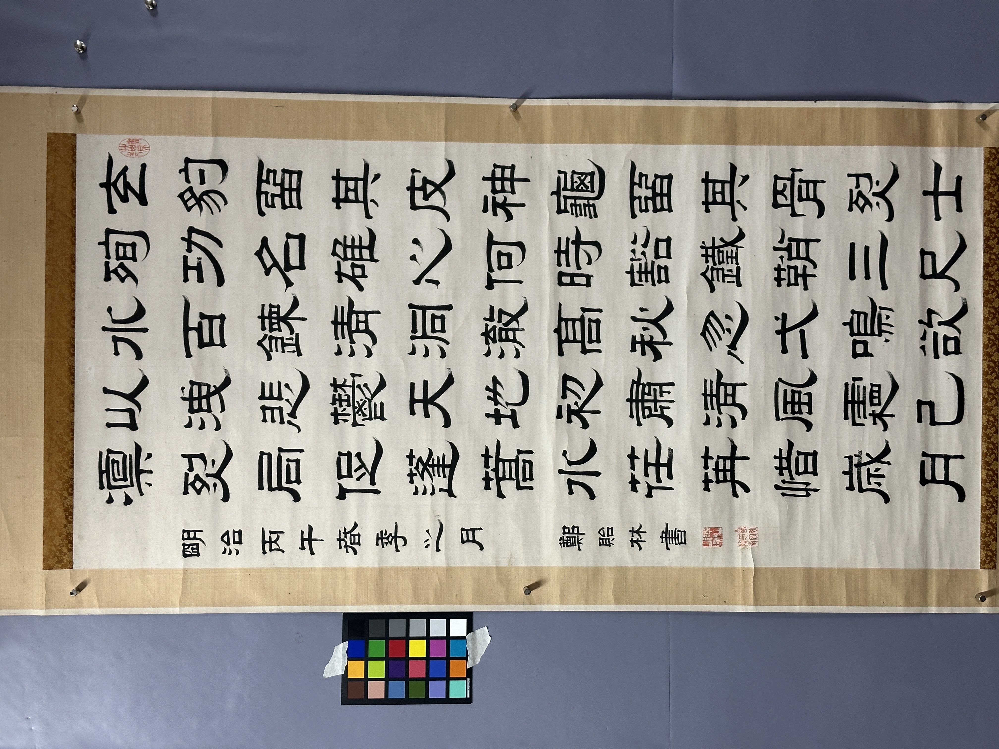 "鄭貽林(1860-1925),字登如福建泉州人,晚清著名書法家,工書法,擅篆刻,尤其以隸書特別著名,是台灣少數碑帖派書法家之一。"