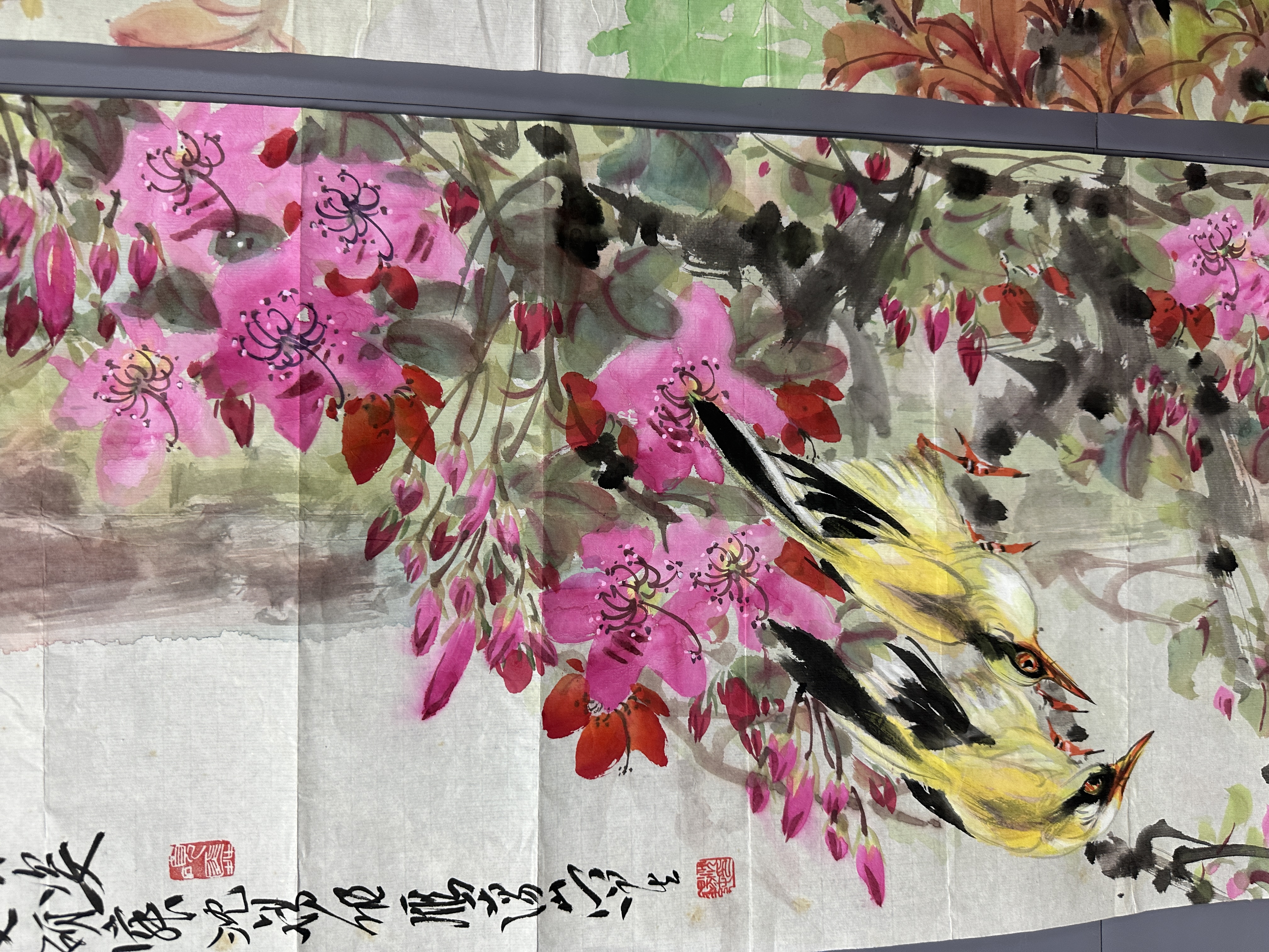 設色紙本120×34cm×4幅 約14.7平尺