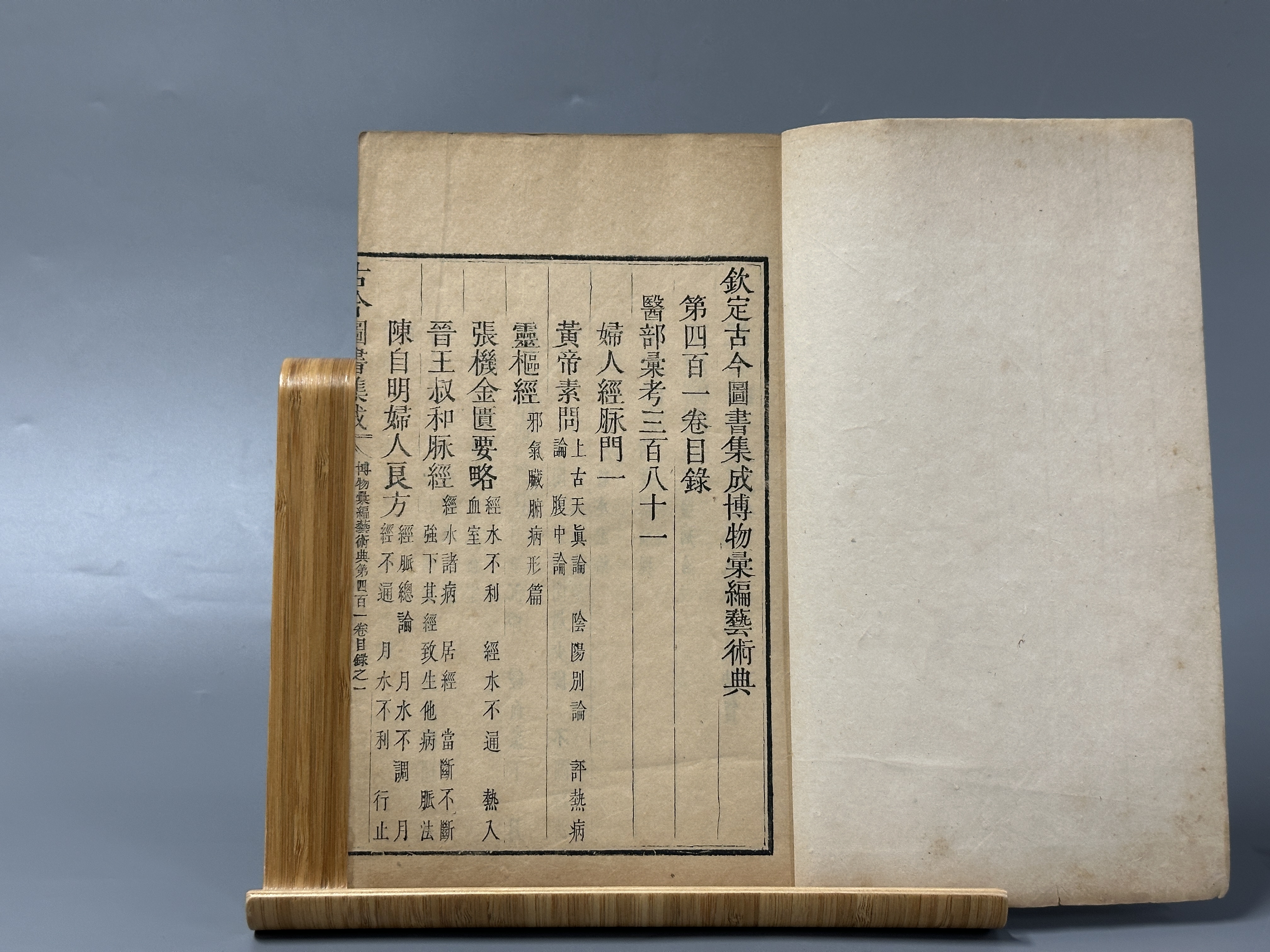 清雍正內府宮裝銅活字本1冊原宮裝是書為《古今圖書集成》401卷,本品寶藏良好,黃綾包角,保持原宮裝,實在珍罕。此書始編於清康熙四十年(1701),完成於雍正六年(1728),歷時兩朝二十八年,是現存規模最大、資料最豐富的類書,全帙共一萬卷,分六編三十二典,基本包容了清雍正朝以前我國古代社會所形成和所積累的各個門類知識。也是中國銅活字印刷卷帙最浩繁、印製最精美的一部曠世奇作,銅字雕刻工整,刷印清晰,所附各圖為木刻版畫,具有很高的藝術價值。