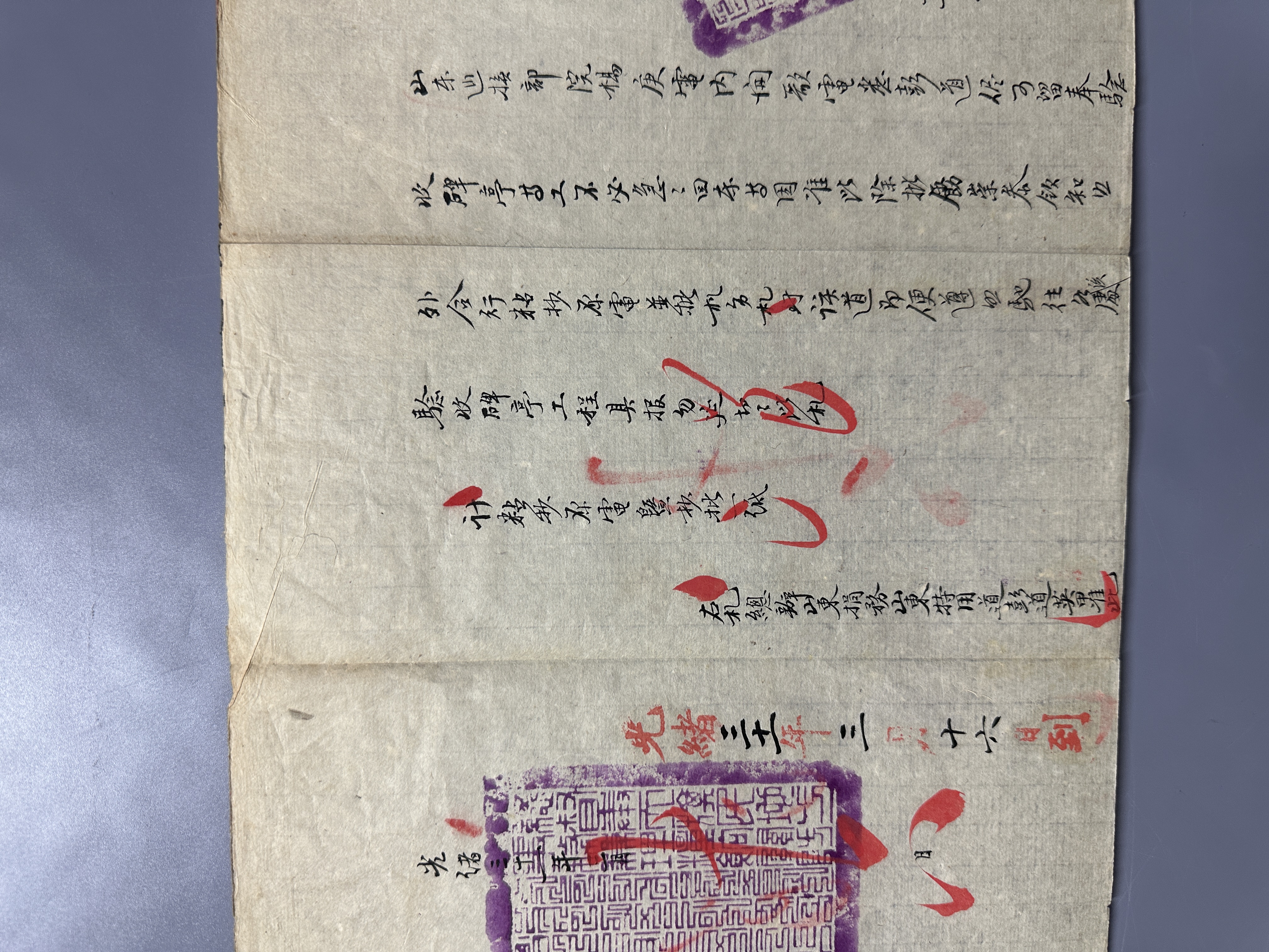 "《光緒盛京將軍發山東巡撫官封套含札文》。罕見文獻史料,完整保存清光緒間正式官方公文書與封套函。目前拍場所見,多僅有官封、或僅有公文書;完整含封與內文者十分稀見。本件札文完整、典型嚴謹的清公文書格式。札文為上對下的公文,正文寫明詳細情事,完整札文前會粘抄原電暨抄批一紙以示所據。本件官封與內文,均銷「總督奉天旗民地方軍務兼理糧餉關防」漢滿文大長方紫印3枚。彭英甲,晚清著名要員與洋務實業家。著名的蘭州第一座跨黃河鐵橋,即為時任蘭州道兼洋務總局總辦彭英甲所建。彭英甲能在甘肅開辦一系列並流傳至今的許多重要實務興利建設,實得力於他先前負責奉天教案善後的經驗與洋人的信任。可惜的是,彭英甲在甘肅之前的史料幾無存記;影響深遠的晚清東北教案善後的資料,現存也多為成書記載,而實體原始公文書、文獻等基本也多付之闕如。本件光緒31年3月16日,奉天將軍的咨文中稱,經電請山東巡撫楊士驤同意,商調當時還在奉天總辦山東捐務的山東特用道彭英甲,再出面主持驗收教案議約中應建立的5座昭雪碑亭。由本文件可進一步知道,彭英甲於議結中法《奉天全省天主教案約章》,不但朝廷、國人滿意,還贏得法公使的信賴,並要求清廷外務部必須由彭英甲代表法方驗收昭雪碑亭工程事。清制官式印記形式與用法均十分嚴謹,這些繁瑣複雜的程式,也是鑑別古籍文獻的重要線索!一般所稱的封疆、欽差大吏,如各省總督、巡撫、河道總督、漕運總督等等,在明清兩朝實際上都是屬於臨時設置與派遣的,因此用的是長方形關防。中央部府院寺,順天府、盛京五部、奉天府、各省督撫等,均用紫色印色。本件官封、內文,均銷「總督奉天旗民地方軍務兼理糧餉關防」漢滿文紫印3枚。官封蓋在前後,內文則蓋在騎縫2處、與日期1處,都完全符合清制體例。本件發文者為「欽命鎮守盛京等處將軍管理兵刑兩部兼管奉天府府尹事務兵部尚書都察院右都御史總督奉天旗民地方軍務兼理糧餉增」。即為增祺(1851-1919),滿洲鑲白旗人,盛京將軍任內曾招安張作霖;後又再授寧夏將軍、遷廣州將軍、署理兩廣總督等要職。併同發文的「欽差大臣署盛京戶部侍郎二品銜都察院右副都御史行巡撫事奉天府府尹隨帶加一級記錄十次廷」,即為廷杰(1840-1911),是末任奉天府府尹。受文者為山東巡撫楊士驤 (1860-1909),字萍石,號蓮府。札文中盛京將軍尊稱為楊蓮帥,除是清官場體例外,也是看好青年要員楊的前途。果然,巡撫山東近三年,楊士驤政績斐然,旋於光緒33年9月接替袁世凱署直隸總督、北洋大臣。惜宣統元年猝卒於任,封贈太子少保、誥授光祿大夫,諡文敬。中國科舉最後一個狀元劉春霖是楊士驤的門生。"