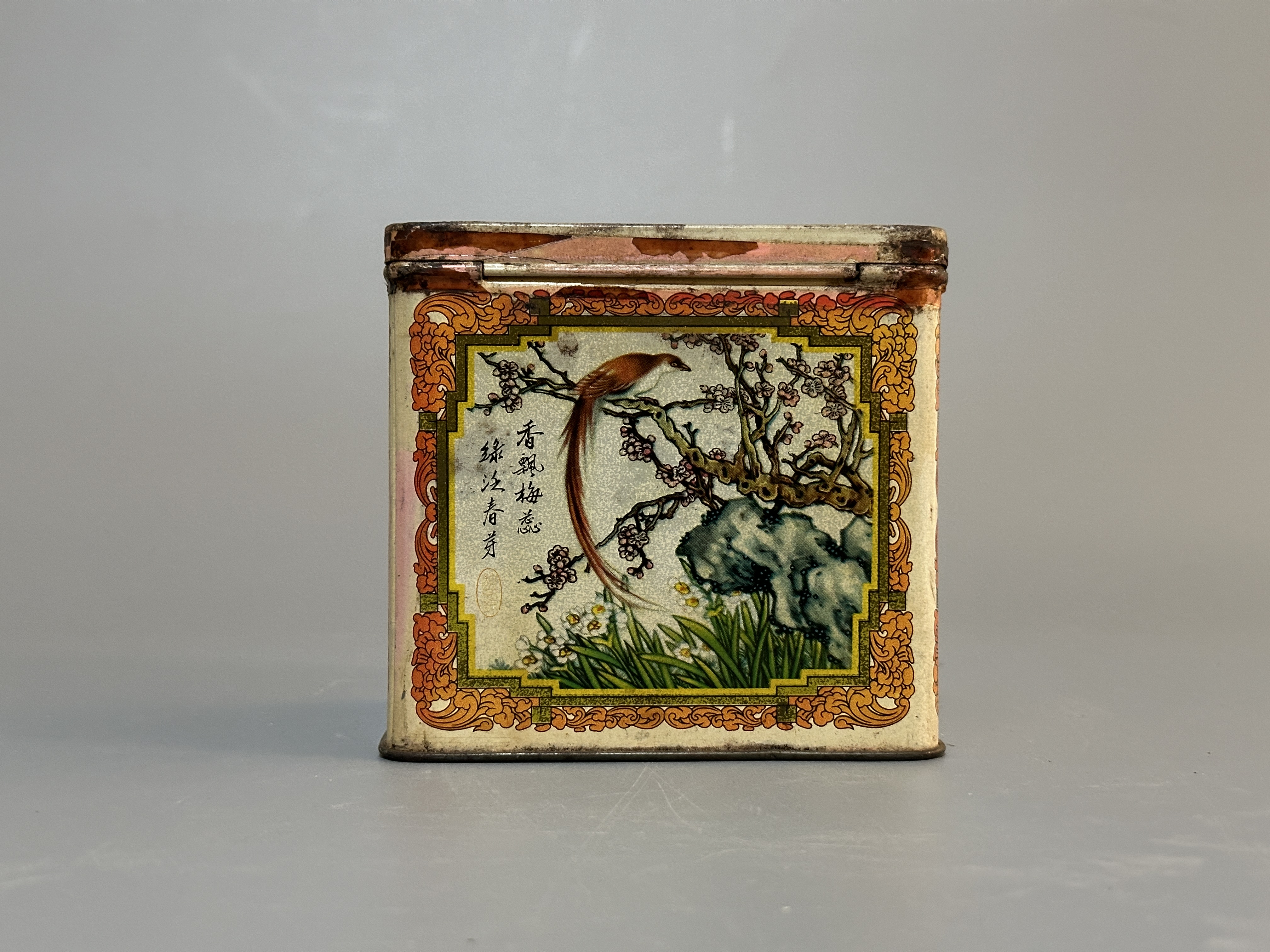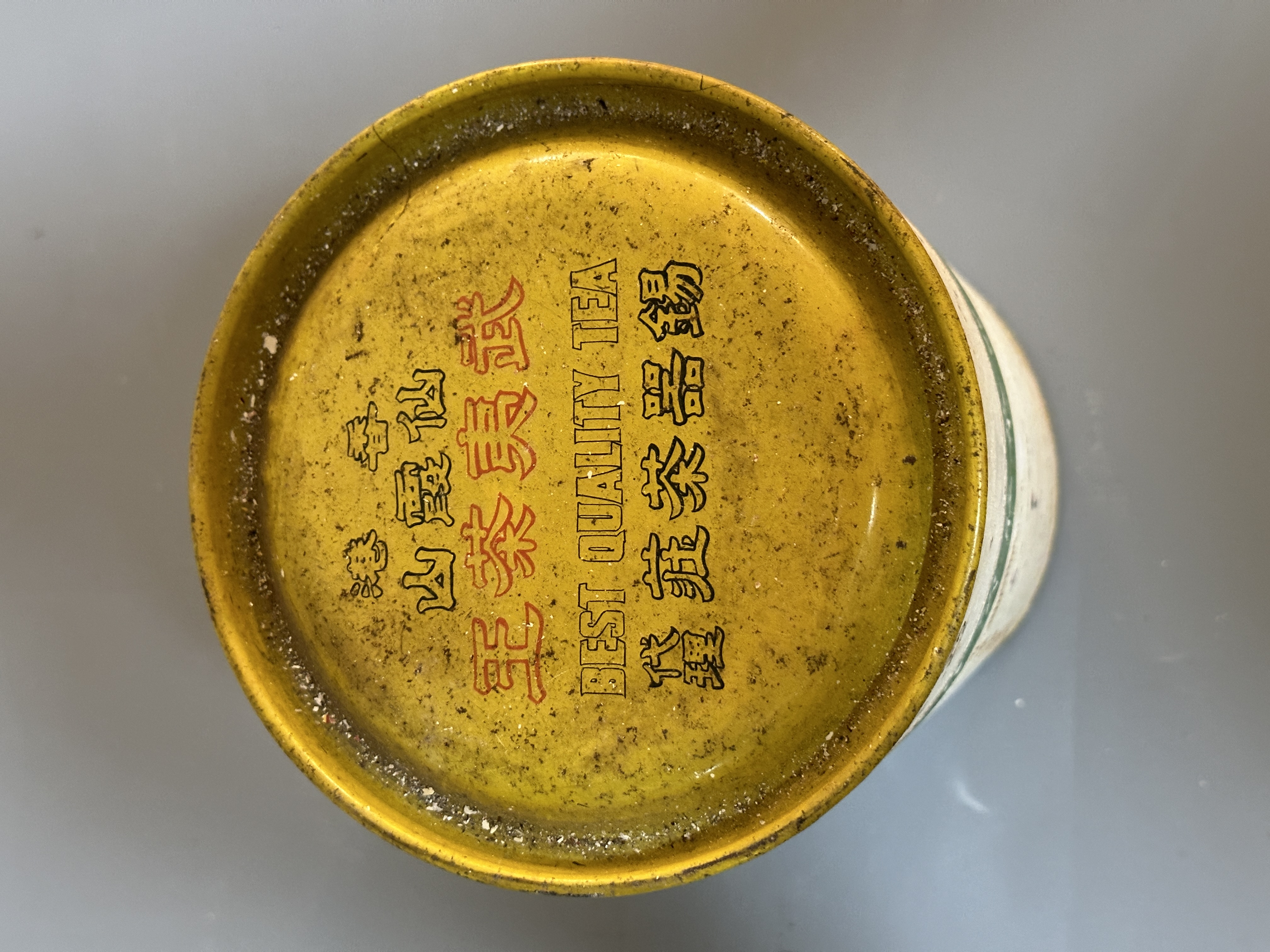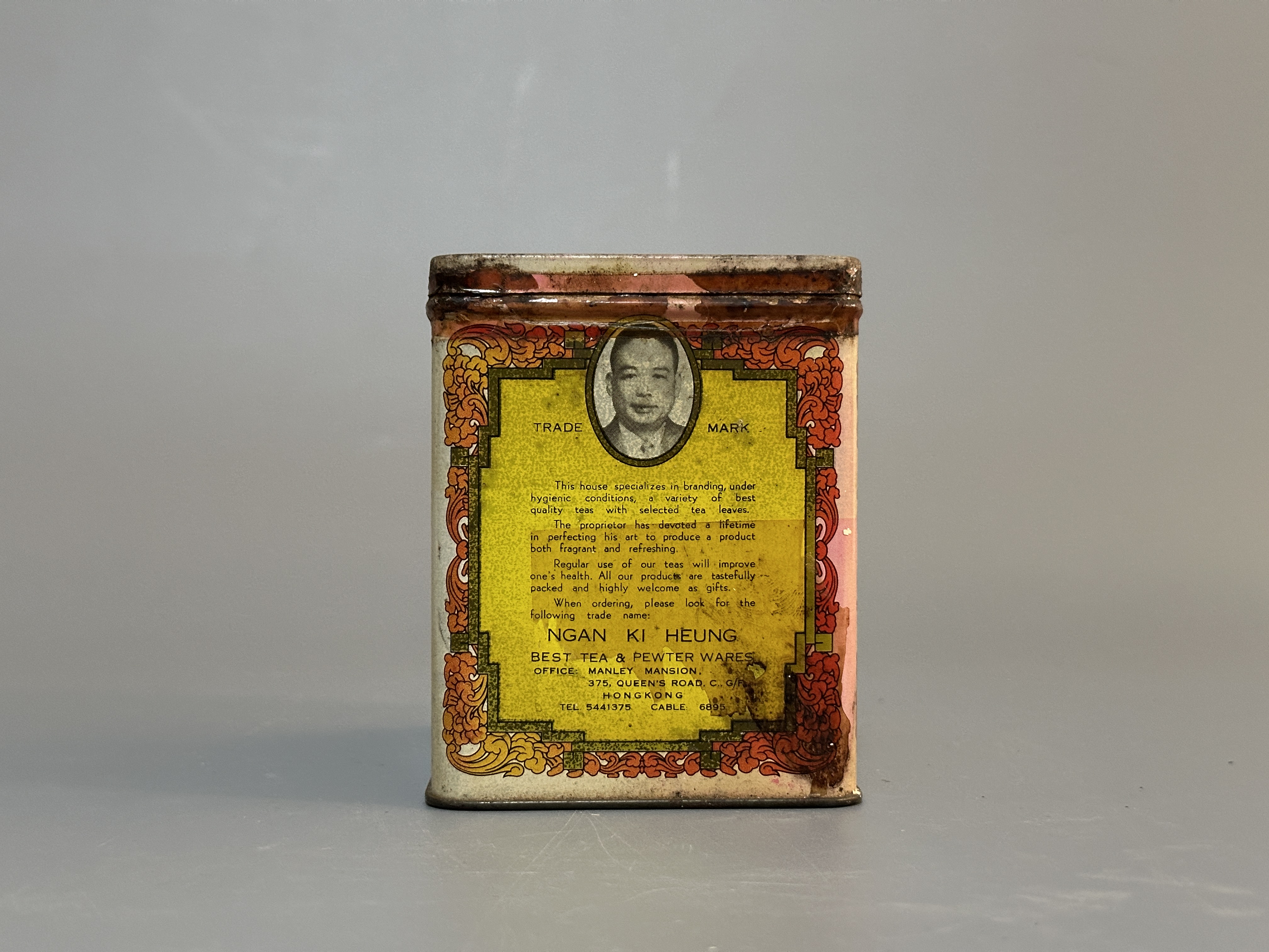 顏奇香茶莊創立於1928年,位於香港上環,是歷史悠久的潮州茶行。1970年代的「金冠茶王」多採用中式長筒圓柱狀的手工錫罐。錫罐氣密性極佳,蓋子放下時會因內部氣壓感慢慢下沉,確保茶葉在數十年間不會受潮。