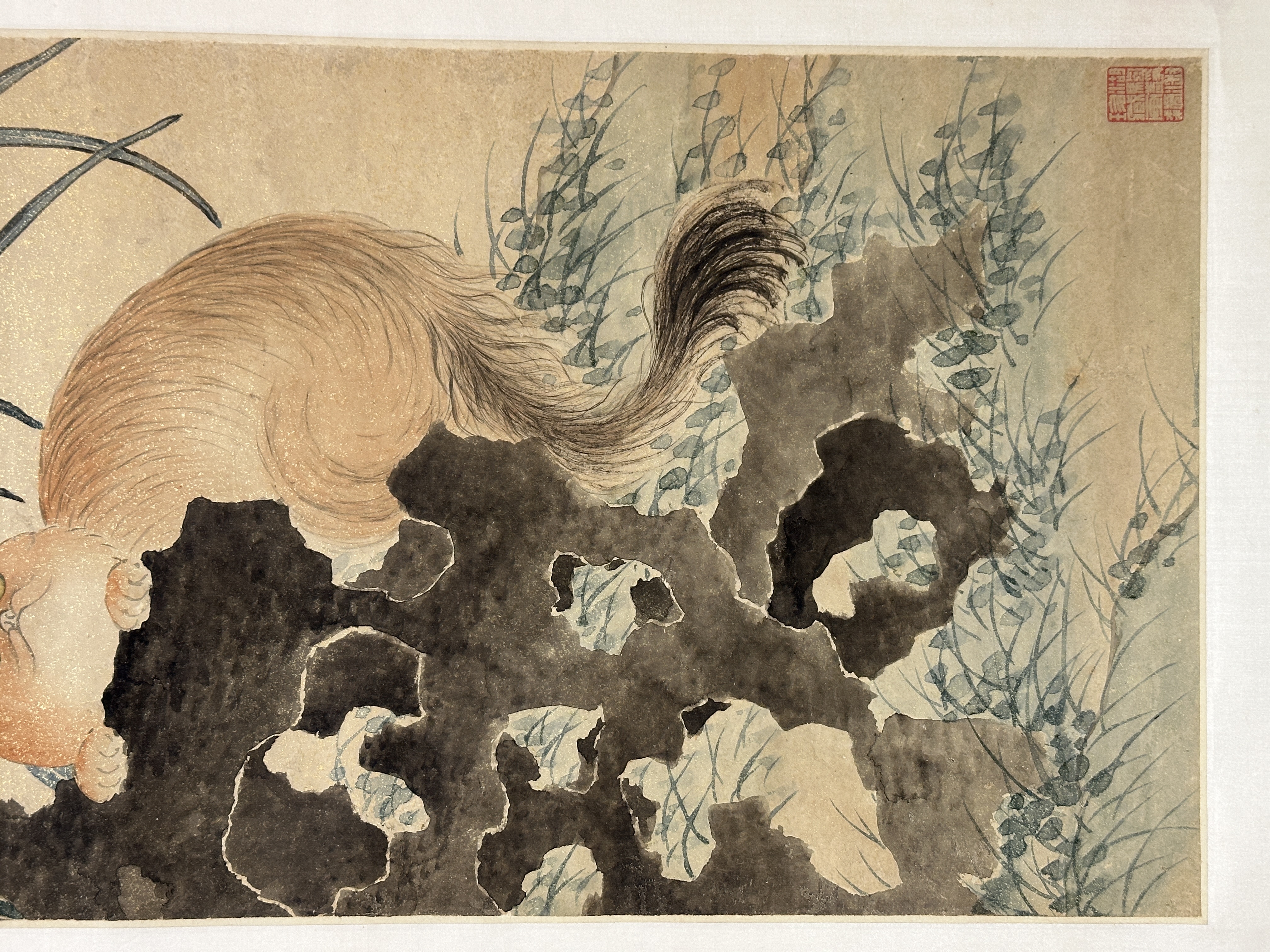 孫承恩(1485-1565)明人,字貞甫,號毅齋,松江人,正德六年進士,官至禮部尚書,諫文簡。書法遒動,無織媚志。參以古意猶多,遊戲丹青,亦善畫人物仕女。著有歷代帝王像贊傳於代。此作曾經吳湖帆、潘靜淑夫婦收藏,畫右下角鶴「湖帆靜淑藏」白文印一方。觀此印風格,當為近代篆刻大家陳巨來所為,但查「吳湖帆印鑑」及《安持精舍印叢》均未得見,蓋少有鎢用,世人所見無多之故,今此露瞼,可作有益的補充。