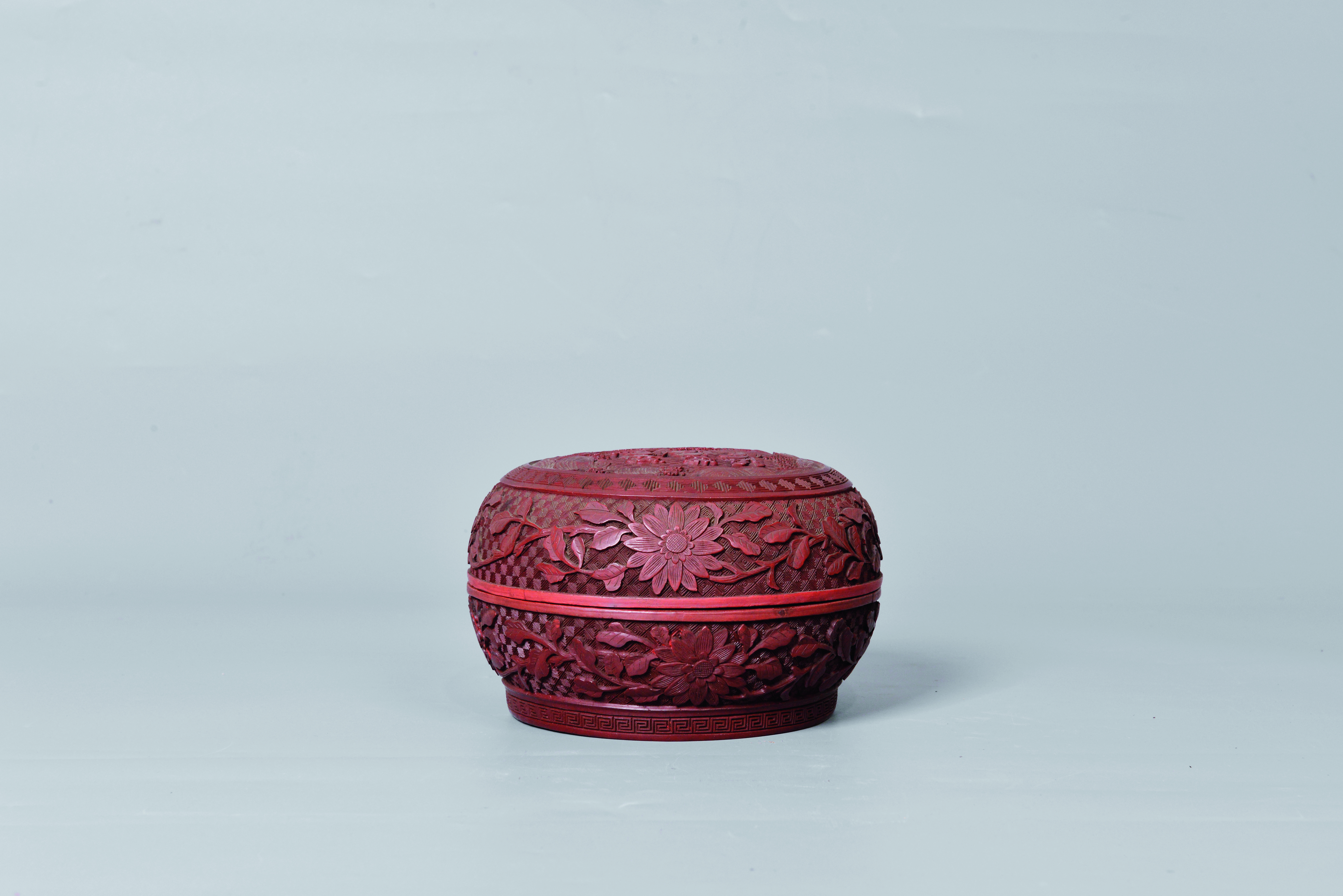 清 浮雕纏枝菊剔紅紋漆盒