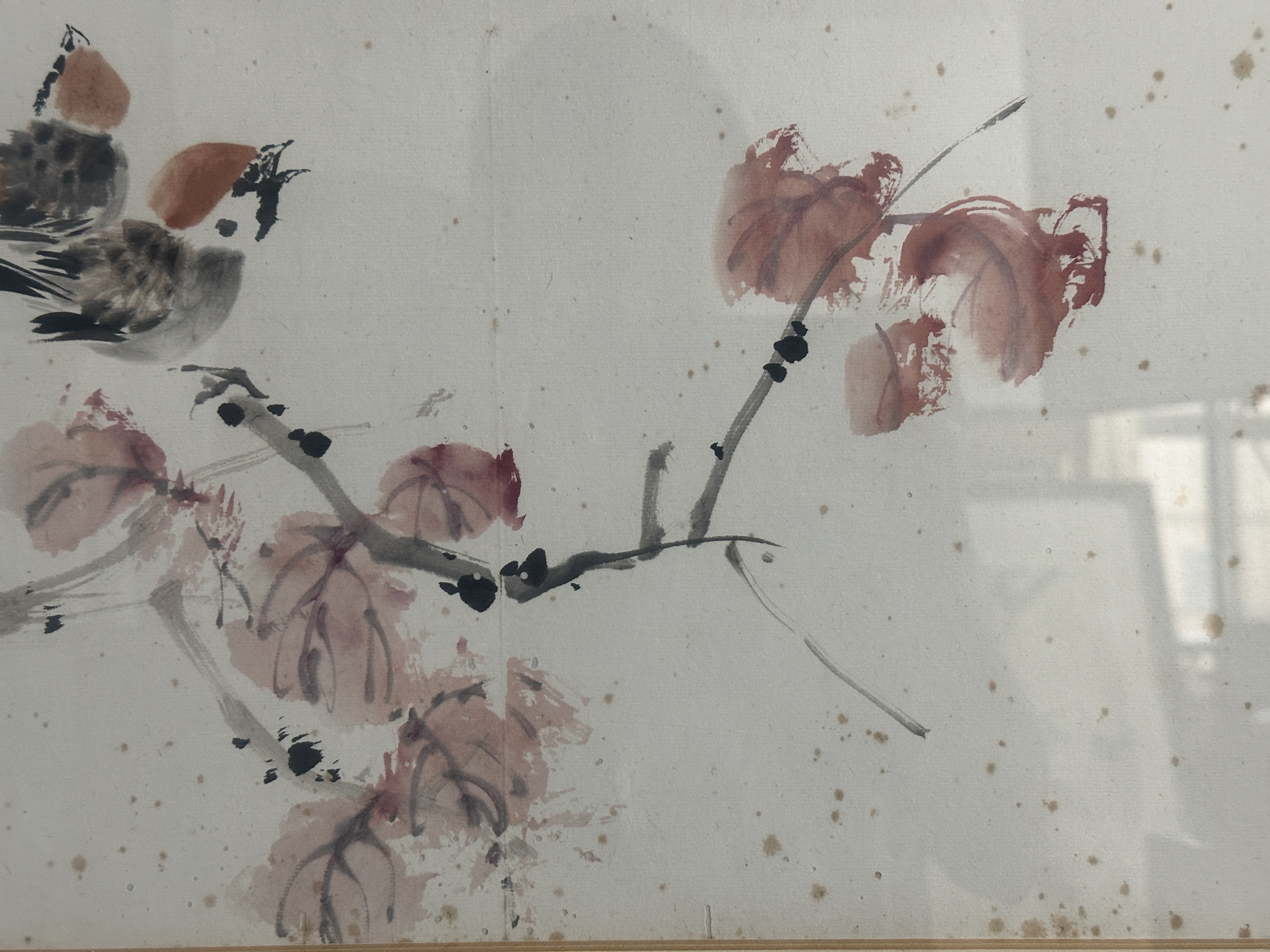 中文說明:喻仲林(1925-1985),祖籍山東冠縣人,台灣著名畫家。早年從軍,1949年入台。1950年進入師範大學旁聽,後師從金勤伯先生學習國畫,專攻宋元花鳥,擅長勾勒設骨二法。與胡念祖、孫家勤並稱為麗水三杰,並一同創辦麗水精舍畫室。喻仲林多次創辦個人畫展,並於1975年應夏威夷大學之邀教授國畫,並獲得中國畫金爵獎。喻仲林是20世紀台灣最具代表性的工筆花鳥畫家之一,以其精細的筆法、典雅的設色和生動的自然意境聞名。他將中國傳統工筆畫與台灣本土生態結合,創造出獨特的花鳥畫風格,被譽為“台灣工筆花鳥第一人”。其作品被台北故宮博物院、國立歷史博物館等機構收藏。此畫精細寫實,羽毛、樹葉等細節刻畫入微,設色生動,色調清雅。