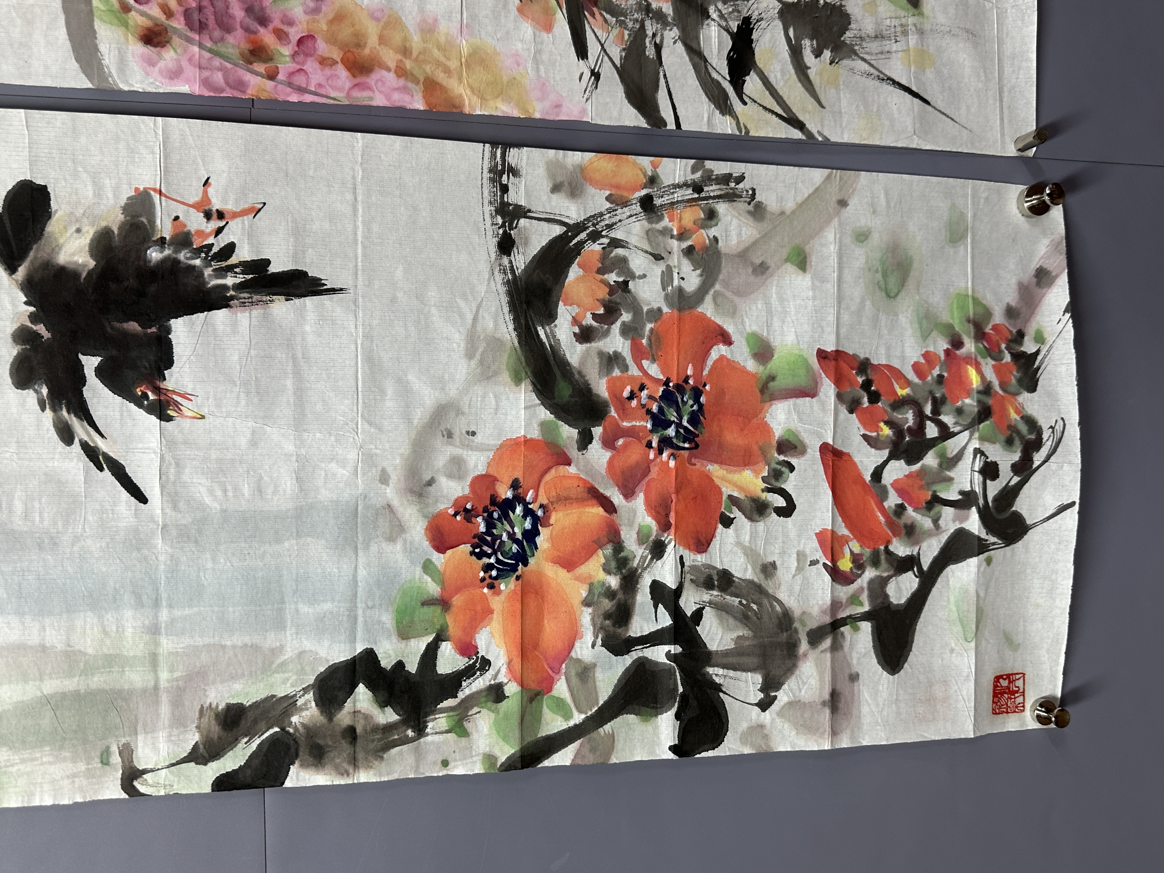 設色紙本120×34cm×4幅 約14.7平尺