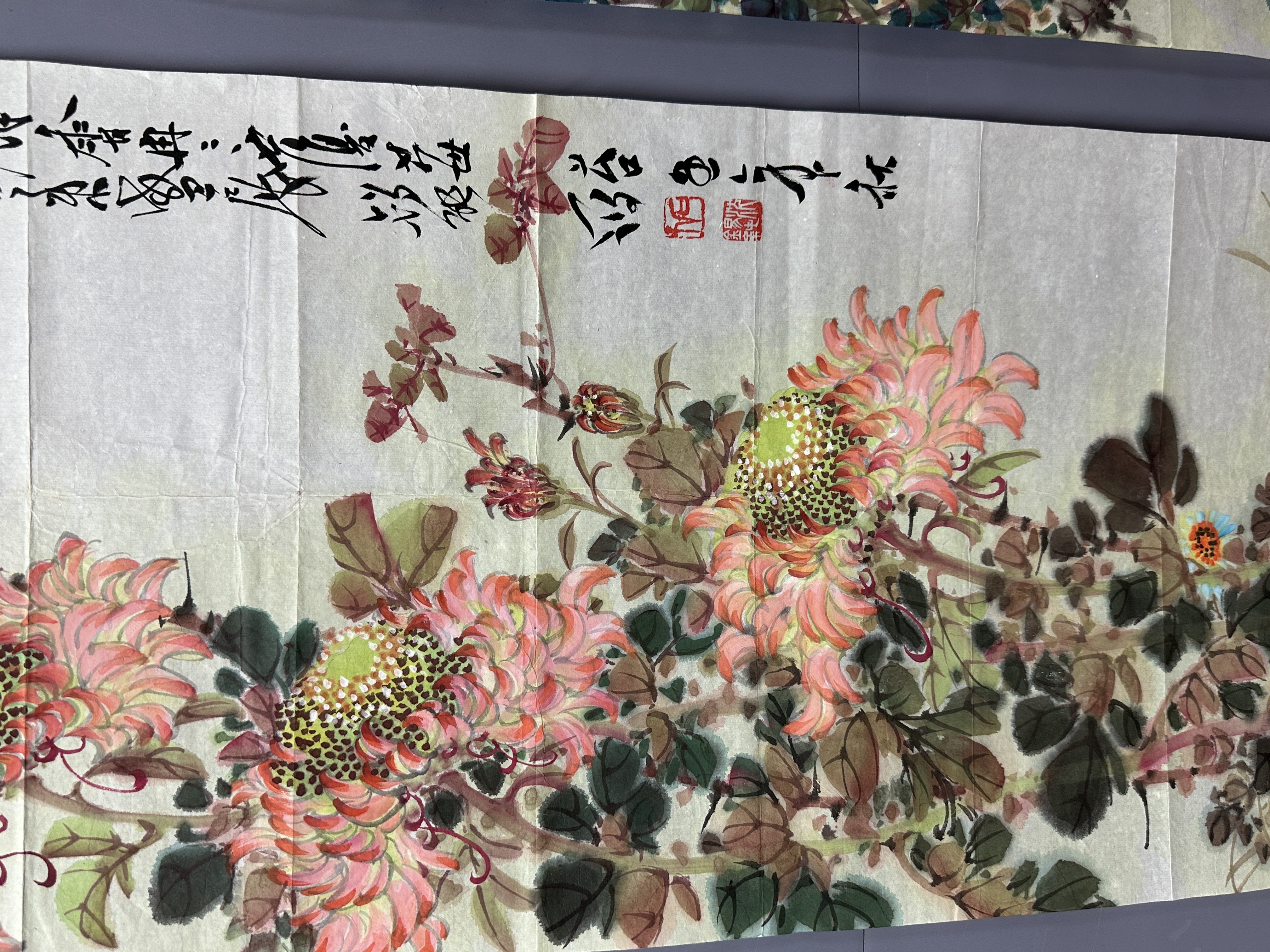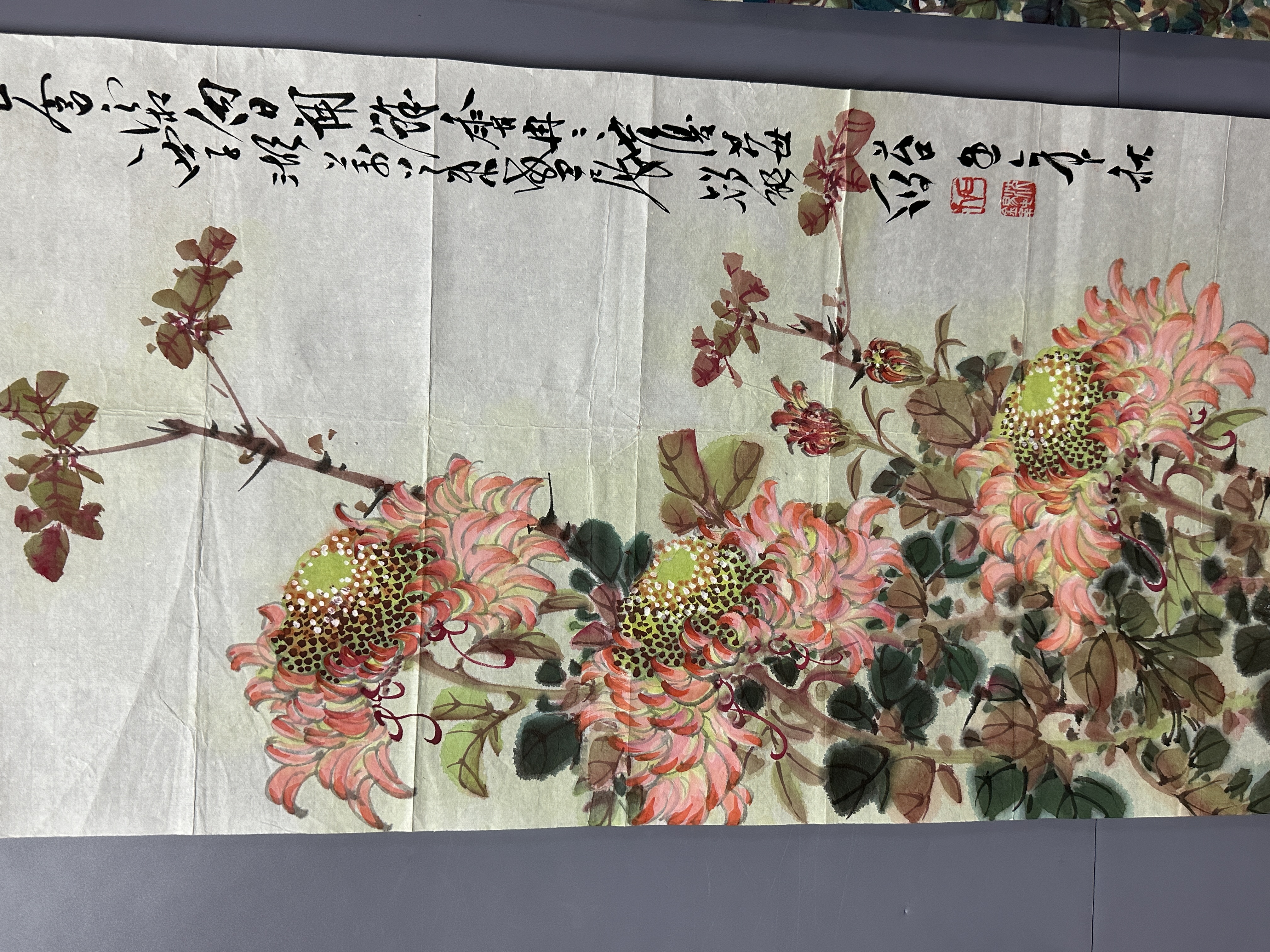 設色紙本122×34cm×4幅 約14.9平尺