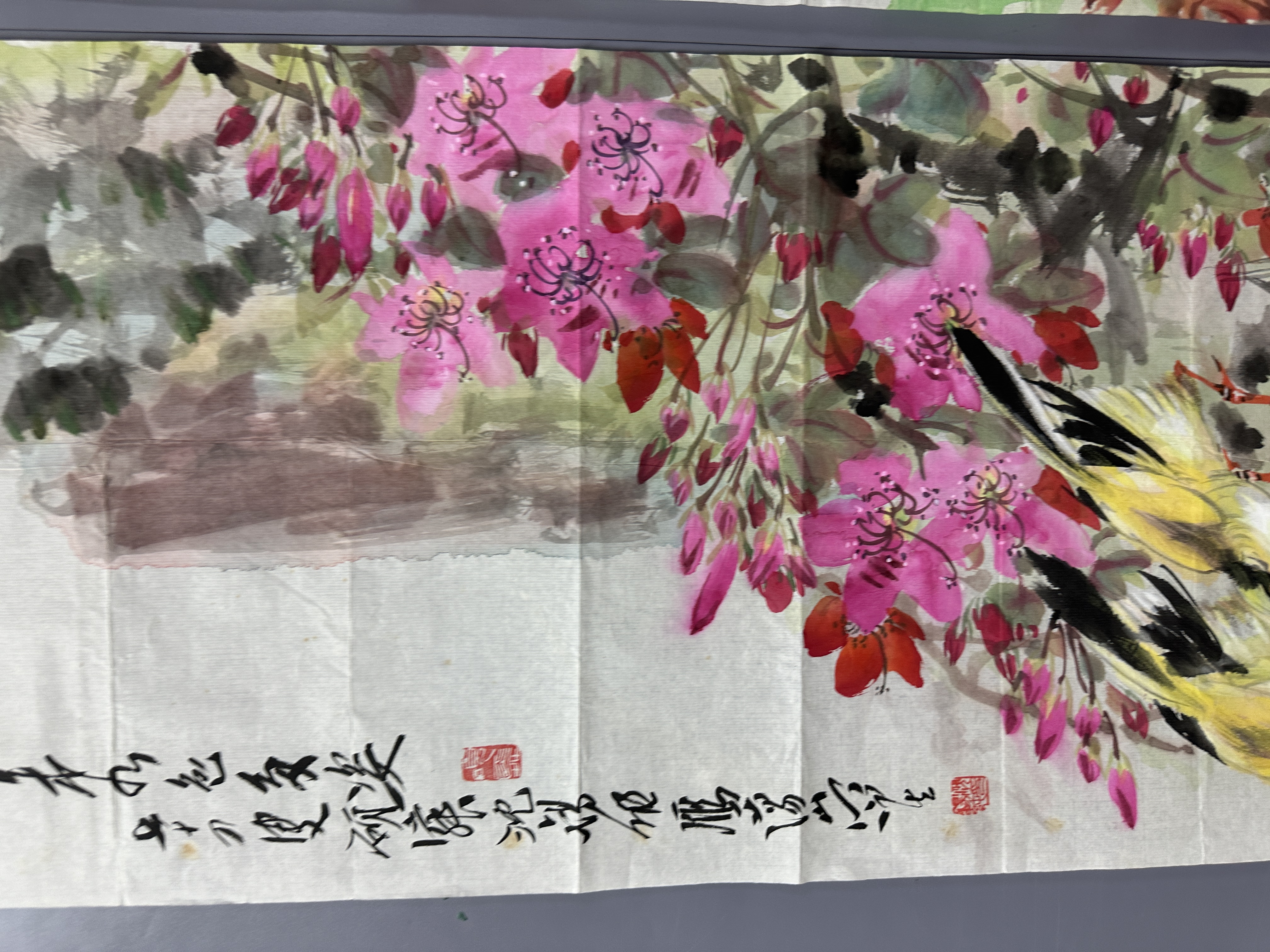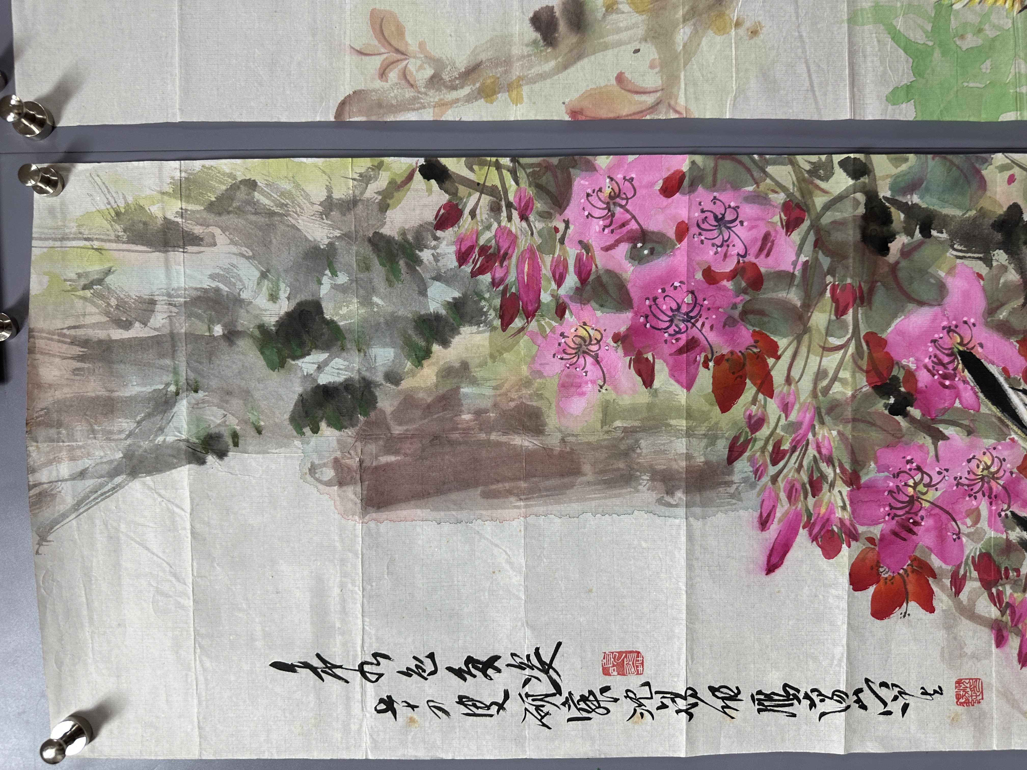 設色紙本120×34cm×4幅 約14.7平尺