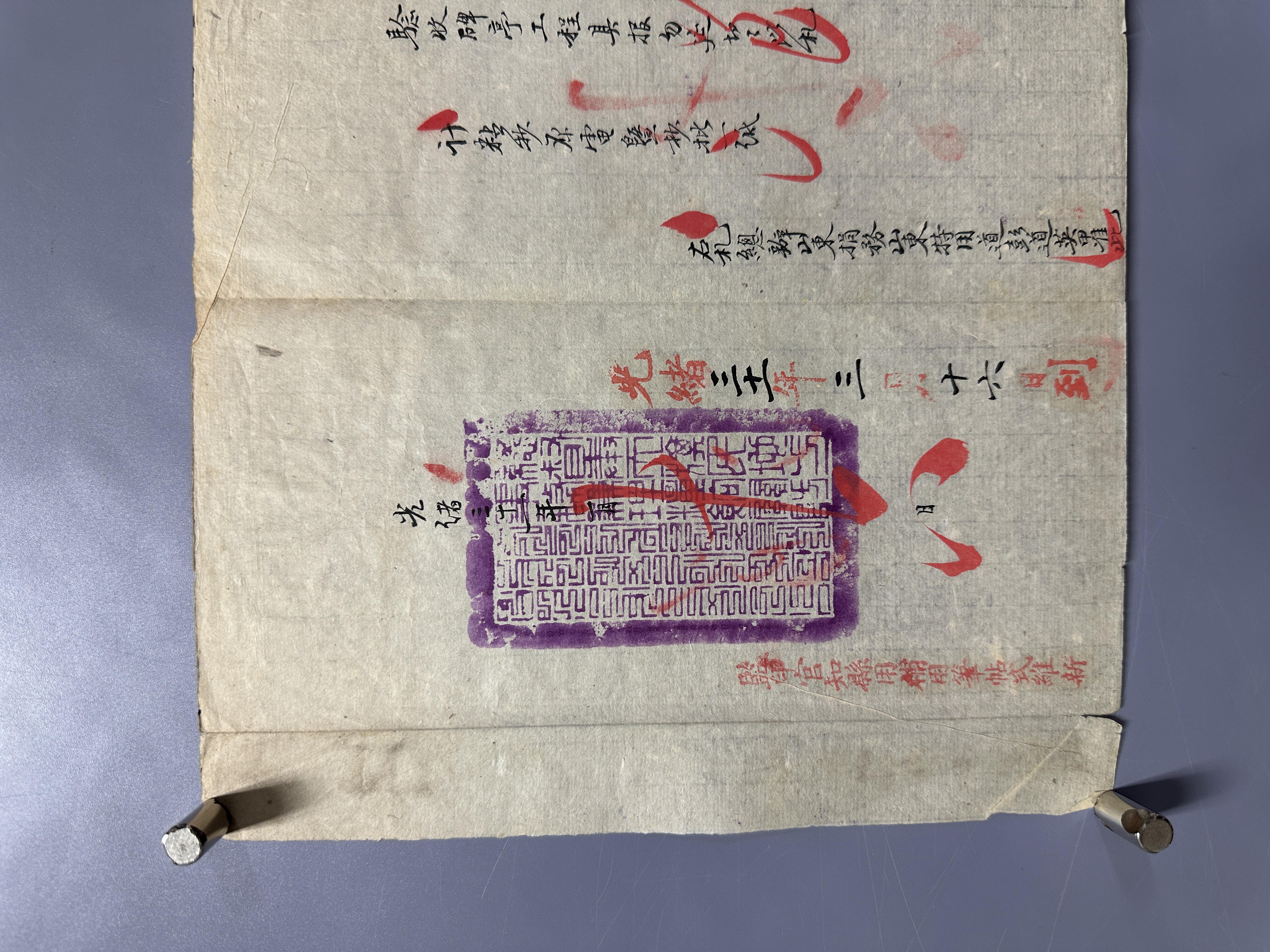 "《光緒盛京將軍發山東巡撫官封套含札文》。罕見文獻史料,完整保存清光緒間正式官方公文書與封套函。目前拍場所見,多僅有官封、或僅有公文書;完整含封與內文者十分稀見。本件札文完整、典型嚴謹的清公文書格式。札文為上對下的公文,正文寫明詳細情事,完整札文前會粘抄原電暨抄批一紙以示所據。本件官封與內文,均銷「總督奉天旗民地方軍務兼理糧餉關防」漢滿文大長方紫印3枚。彭英甲,晚清著名要員與洋務實業家。著名的蘭州第一座跨黃河鐵橋,即為時任蘭州道兼洋務總局總辦彭英甲所建。彭英甲能在甘肅開辦一系列並流傳至今的許多重要實務興利建設,實得力於他先前負責奉天教案善後的經驗與洋人的信任。可惜的是,彭英甲在甘肅之前的史料幾無存記;影響深遠的晚清東北教案善後的資料,現存也多為成書記載,而實體原始公文書、文獻等基本也多付之闕如。本件光緒31年3月16日,奉天將軍的咨文中稱,經電請山東巡撫楊士驤同意,商調當時還在奉天總辦山東捐務的山東特用道彭英甲,再出面主持驗收教案議約中應建立的5座昭雪碑亭。由本文件可進一步知道,彭英甲於議結中法《奉天全省天主教案約章》,不但朝廷、國人滿意,還贏得法公使的信賴,並要求清廷外務部必須由彭英甲代表法方驗收昭雪碑亭工程事。清制官式印記形式與用法均十分嚴謹,這些繁瑣複雜的程式,也是鑑別古籍文獻的重要線索!一般所稱的封疆、欽差大吏,如各省總督、巡撫、河道總督、漕運總督等等,在明清兩朝實際上都是屬於臨時設置與派遣的,因此用的是長方形關防。中央部府院寺,順天府、盛京五部、奉天府、各省督撫等,均用紫色印色。本件官封、內文,均銷「總督奉天旗民地方軍務兼理糧餉關防」漢滿文紫印3枚。官封蓋在前後,內文則蓋在騎縫2處、與日期1處,都完全符合清制體例。本件發文者為「欽命鎮守盛京等處將軍管理兵刑兩部兼管奉天府府尹事務兵部尚書都察院右都御史總督奉天旗民地方軍務兼理糧餉增」。即為增祺(1851-1919),滿洲鑲白旗人,盛京將軍任內曾招安張作霖;後又再授寧夏將軍、遷廣州將軍、署理兩廣總督等要職。併同發文的「欽差大臣署盛京戶部侍郎二品銜都察院右副都御史行巡撫事奉天府府尹隨帶加一級記錄十次廷」,即為廷杰(1840-1911),是末任奉天府府尹。受文者為山東巡撫楊士驤 (1860-1909),字萍石,號蓮府。札文中盛京將軍尊稱為楊蓮帥,除是清官場體例外,也是看好青年要員楊的前途。果然,巡撫山東近三年,楊士驤政績斐然,旋於光緒33年9月接替袁世凱署直隸總督、北洋大臣。惜宣統元年猝卒於任,封贈太子少保、誥授光祿大夫,諡文敬。中國科舉最後一個狀元劉春霖是楊士驤的門生。"